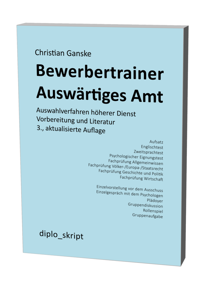 Ziel des Buches ist es, Bewerbern und Bewerberinnen den Aufbau der Teile des schriftlichen und mündlichen Tests zu erläutern, relevante Vorbereitungsliteratur vorzustellen und Wege der gezielten Vorbereitung aufzuzeigen. Das Buch geht darin deutlich weiter als die Ihnen auf der Homepage des Auswärtigen Amts zum Auswahlverfahren bereits zur Verfügung gestellten Informationen.